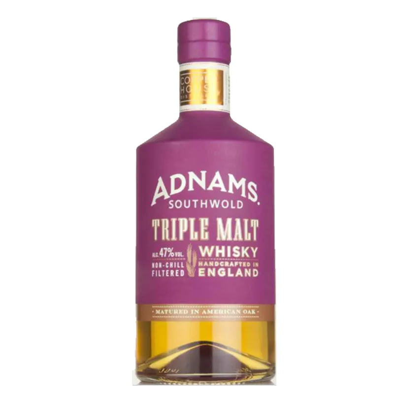 Adnams Triple Malt Whisky is made with wheat, barley, and oats. The wheat creates extra smoothness and the oats, creaminess. Ageing in new American oak barrels for five years has created bold, strong flavours of coconut and chocolate. The nose is complex with notes of spice, coconut and toasted oak, citrus fruit and sweet honey. The palate takes you through sumptuous chocolate and exploding spices, before a long, satisfying finish.