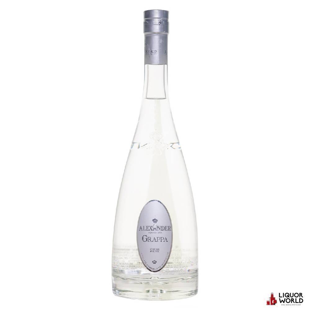 Alexander Grappa is a refined Italian spirit, crafted with precision from the pomace (grape skins, seeds, and pulp) of select premium grapes grown in the Veneto region of Northern Italy. Distilled using traditional methods and modern techniques, this grappa captures the essence of its origin — pure, aromatic, and elegantly dry. Bottled in a strikingly sleek decanter-style bottle, Alexander Grappa is both a visual and sensory delight, perfect for connoisseurs seeking an authentic taste of Italy’s most iconic digestif. With a crystal-clear appearance and clean, floral character, it’s a timeless expression of artisanal distillation.