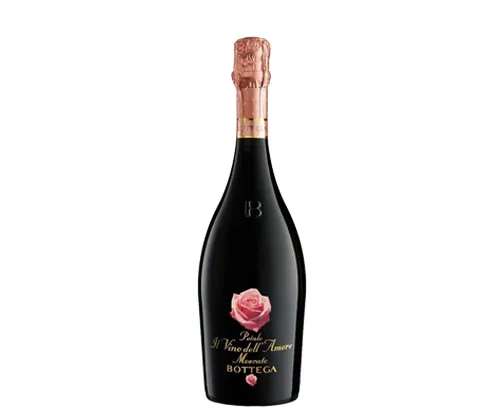 Moscato is a white sparkling wine characterized by a clear sweetness, pronounced and elegant bouquet, low alcohol content, and a typical scent of roses that evokes the image of petals on the label.