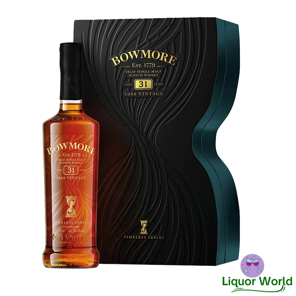 Bowmore 31 Year Old Timeless 1988 Vintage Cask Strength Single Malt Scotch Whisky 700mL is a premium and rare whisky made by the Bowmore distillery, located on the island of Islay in Scotland. This limited edition release is made from carefully selected whiskies that were distilled in 1988 and aged for 31 years in oak casks before being bottled in 2019.