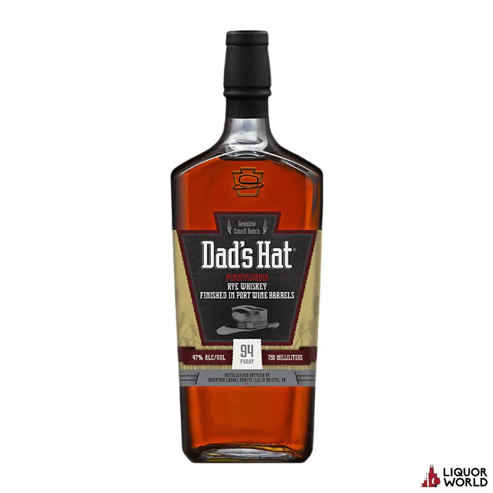 Description: Experience the unique and refined taste of Dad’s Hat Pennsylvania Rye Port Wine Finish Whiskey, elegantly presented in a 700ml bottle. This distinctive whiskey is crafted with care in Pennsylvania, a region known for its rich rye whiskey heritage. Finished in port wine barrels, Dad’s Hat Rye offers a harmonious blend of traditional rye spice and the rich, fruity sweetness imparted by the port casks. The result is a complex and smooth whiskey with notes of dried fruit, spice, and a hint of oak. Perfect for sipping neat or adding a sophisticated twist to classic cocktails, Dad’s Hat Pennsylvania Rye Port Wine Finish Whiskey is a testament to innovative craftsmanship and tradition.