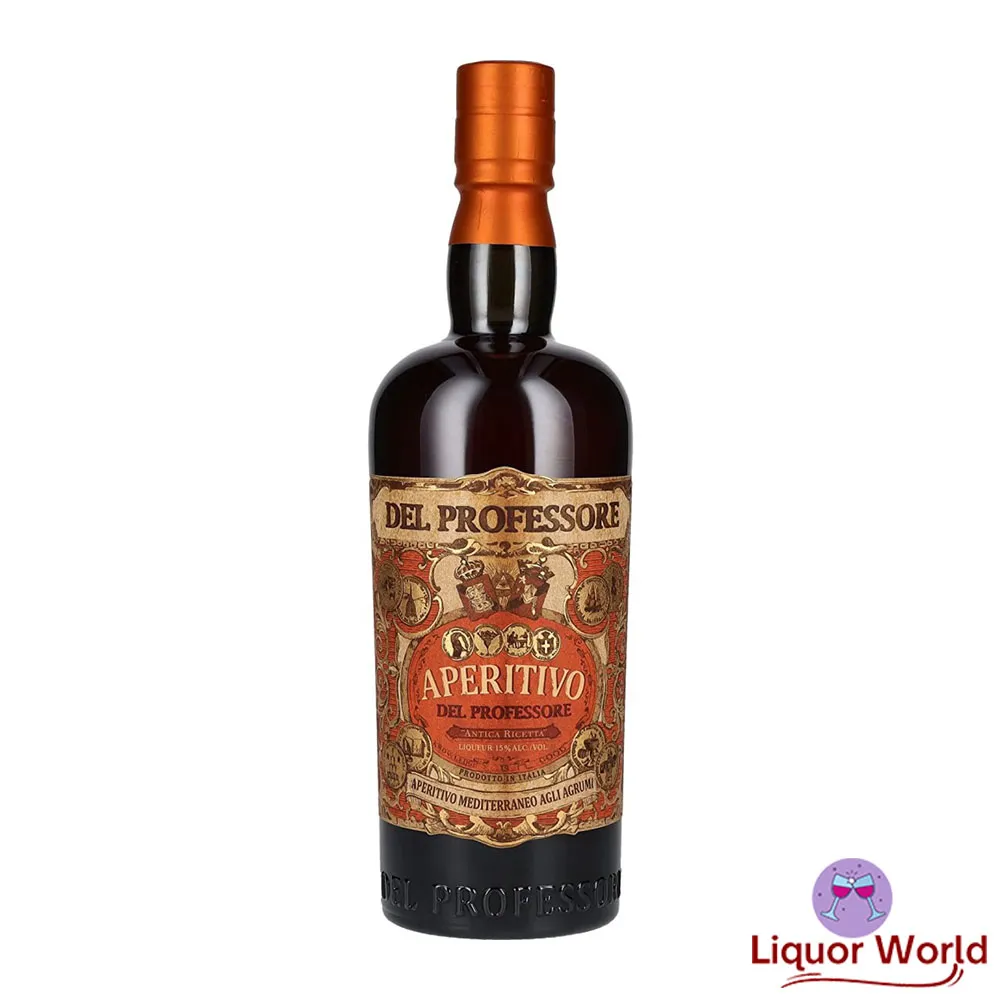 Del Professore Aperitivo is a 700ml bottle of Italian aperitivo, a type of bitter liqueur typically enjoyed before a meal to stimulate the appetite. It is produced in small batches by the Antica Distilleria Quaglia, using a blend of natural botanicals, including bitter orange, rhubarb, gentian, and wormwood, among others. This aperitivo has a complex and well-balanced flavor with notes of citrus, spice, and herbs, and has a reddish-orange color. It is typically served over ice with a slice of orange or grapefruit, and can also be used in cocktails, such as a Negroni or an Americano. Del Professore Aperitivo is 15% alcohol by volume (ABV).