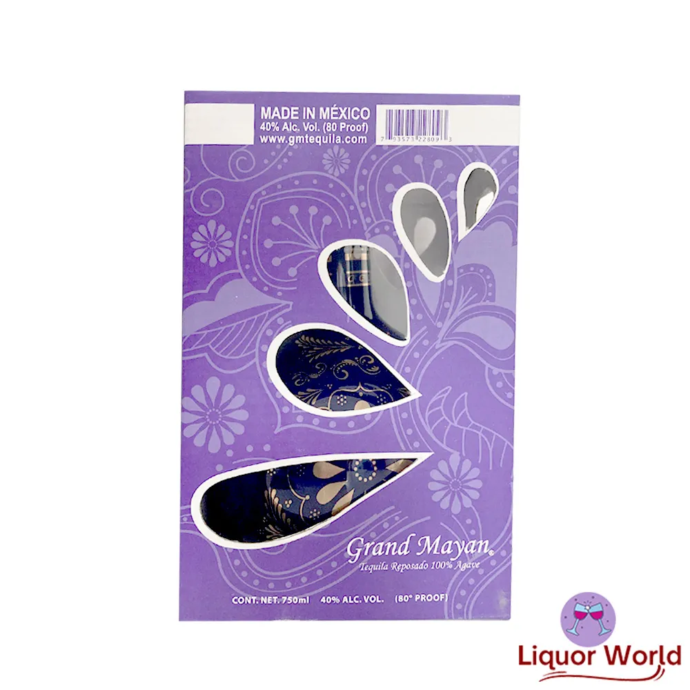 Grand Mayan Reposado Tequila 750ml is a premium aged tequila made from 100% blue agave grown in the highlands of Jalisco, Mexico. After being double distilled, it is aged for a minimum of six months in American oak barrels to give it a smooth and complex flavor profile. This tequila has notes of vanilla, caramel, and honey on the palate, with a hint of oak and a long, smooth finish. The bottle is handcrafted from crystal and inspired by ancient Mayan culture. This premium tequila is perfect for sipping neat or for creating premium cocktails.