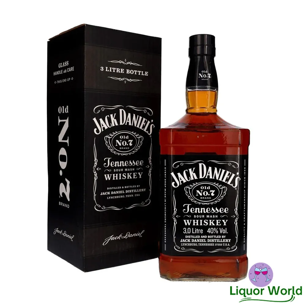 Jack Daniel’s Old No.7 Double Magnum Tennessee Whiskey 3L that is renowned for its smooth, sweet flavor profile. This Double Magnum Tennessee Whiskey bottle contains 3 liters of the iconic Old No.7, making it perfect for sharing with friends or for special occasions. The whiskey is made from a unique blend of corn, rye, and barley malt, which is then distilled and charcoal-mellowed before being aged in new, charred oak barrels. This process creates a smooth and slightly smoky flavor with notes of vanilla, caramel, and oak.