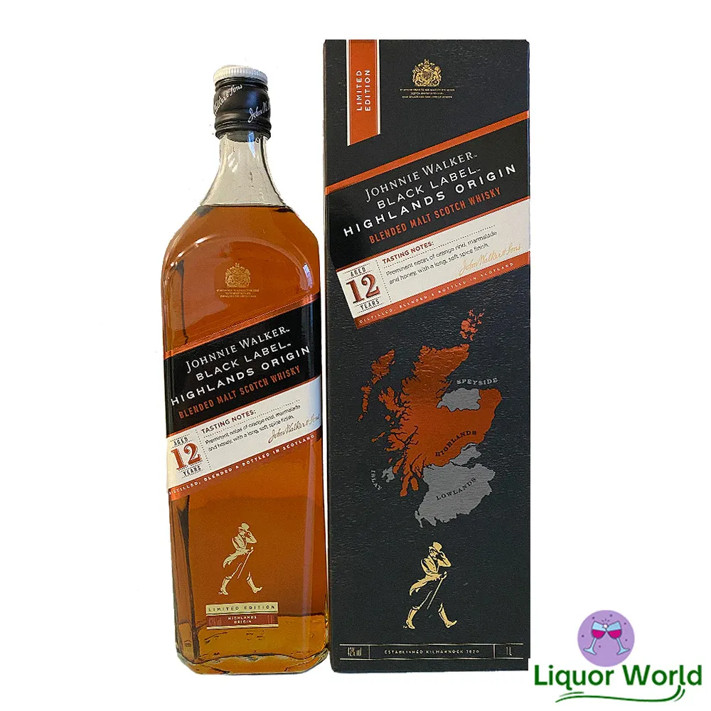 Johnnie Walker Black Label Highlands Origin 12 Year Old Blended Scotch Whisky 1L