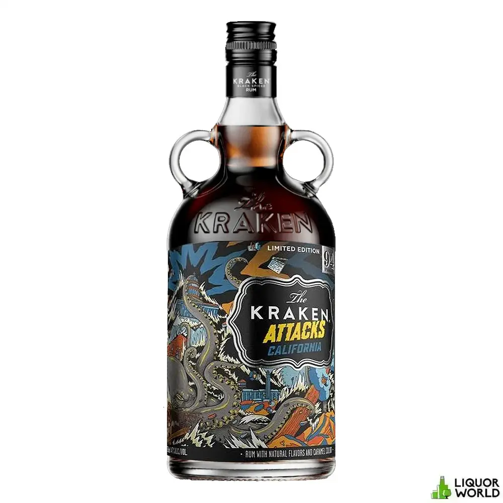 Kraken Attacks California Limited Edition is a bold and exclusive release that captures the essence of the Kraken brand with an extra punch. Bottled at 94 proof (47% ABV), this limited edition black spiced rum blends the iconic rich, dark molasses flavor with a complex array of spices and a hint of California’s distinctive oak influence. The result is a rum that’s powerful yet smooth, with a robust flavor profile perfect for sipping or mixing in your favorite cocktails.