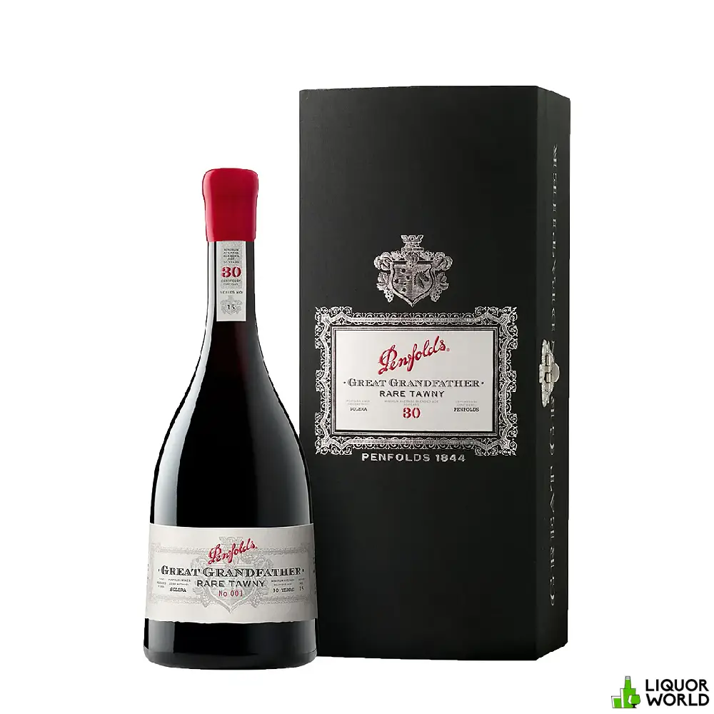 Discover the exceptional and rich flavors of Penfolds Great Grandfather 30 Year Old Rare Blended Tawny Port Wine, exquisitely bottled in a 750mL format. This rare and luxurious tawny port is a testament to Penfolds’ legacy of winemaking excellence. Crafted from a blend of the finest aged tawny ports, each component of this blend has been matured for a minimum of 30 years in seasoned oak barrels, developing a deep and complex profile. With notes of dried fruits, nuts, and a hint of spice, Penfolds Great Grandfather offers a sophisticated and indulgent tasting experience. Perfect for savoring on special occasions, this tawny port is a true celebration of time-honored tradition and masterful blending.