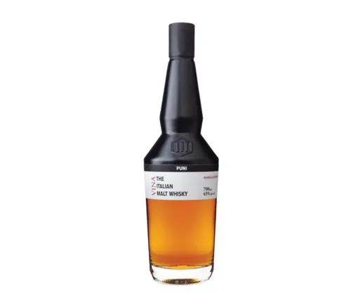 VINA is our exclusive range of our whisky matured in handselected casks from Sicily which have previously held Marsala wine. In PUNI VINA mixed aromas of fruit cake are dominant. Creamy walnuts and sweet sultanas envelop the palate and notes of plums, orange peel and cherry compote with cinnamon complement the full-bodied character.
