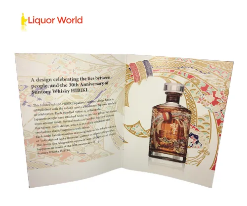 One of the most beautiful bottles Hibiki of ever produced, this remarkable expression was released to commemorate the Hibiki Japanese Harmony Limited Edition 30th anniversary of the Hibiki brands launch in 1989. In keeping with Hibiki’s representation of Japanese art and design, the bottle has been inspired by a traditional kimono pattern and is embellished with Japanese symbols of celebration. The result is a collectible bottle that is a work of art to be cherished by Hibiki’s most ardent fans.