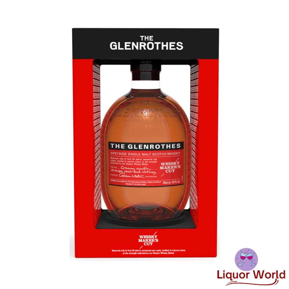 The Glenrothes Makers Cut Single Malt Scotch Whisky is a premium quality single malt whisky produced by the Glenrothes distillery in Scotland. It is bottled in a 700ml glass bottle and has a rich amber color, reflecting its aging in oak casks.