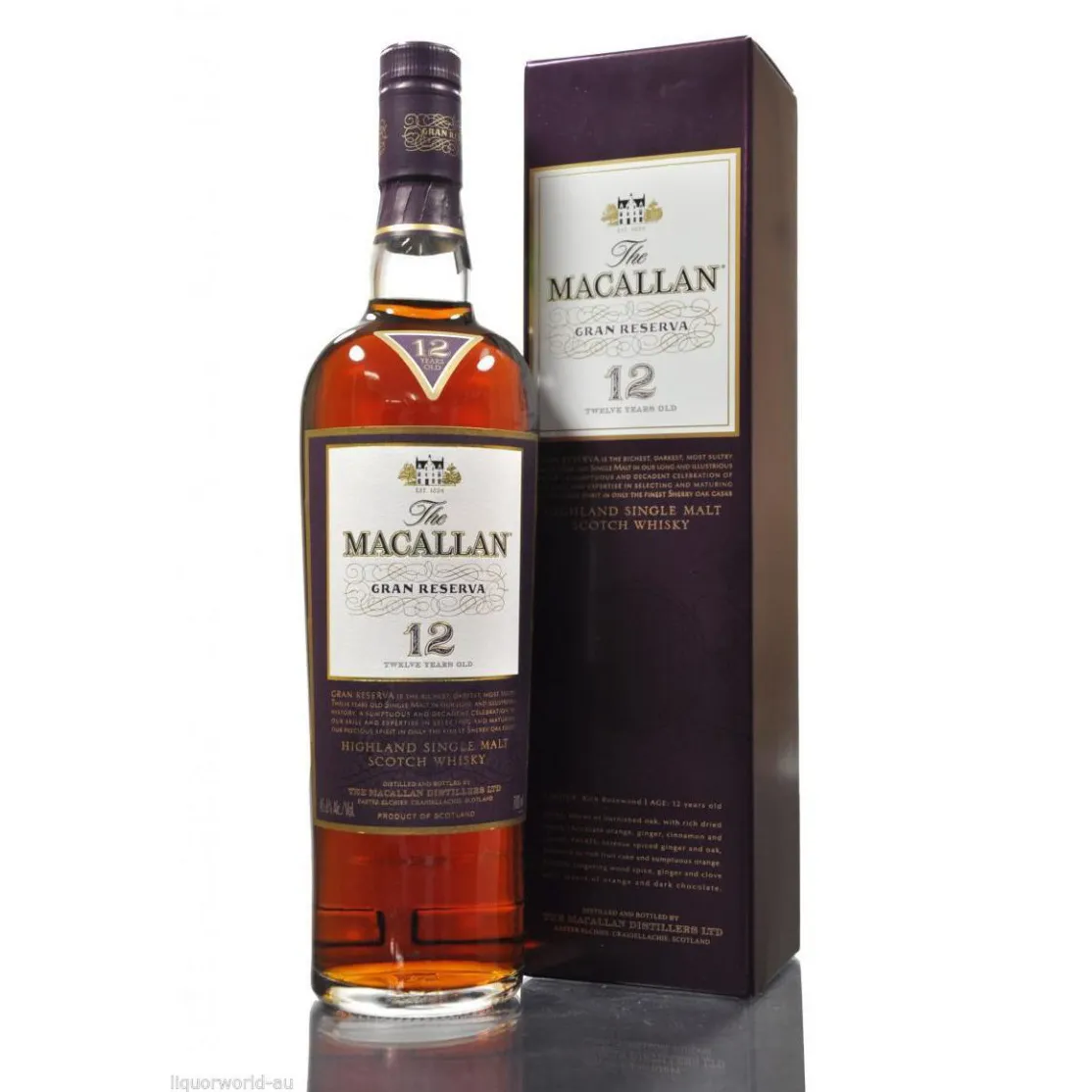 Named “Gran Reserva” in acknowledgement of its close involvement with the finest sherry, this rare malt has emerged from over 12 years of cask ageing suffused with rich and complex spicy characters, delicious dried fruit flavours with citrus orange set against a background of rich resinous wood lending the whisky a profound depth of character. Gran Reserva’s richness of colour, its full, resinous, spicy character and complex fruit flavours mark it out as a malt steeped in the impeccable pedigree of The Macallan, owing much to both its Scottish ancestry and its Spanish oak sherry wood heritage. The design of the Gran Reserva packaging echoes this pedigree and marries classic Macallan imagery with Spanish themes.One bottle only to sell. Excellent condition.